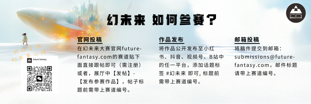 將稿件提交到郵箱:submissions@future-fantasy.com,郵件標(biāo)題請(qǐng)帶上賽道編號(hào)。