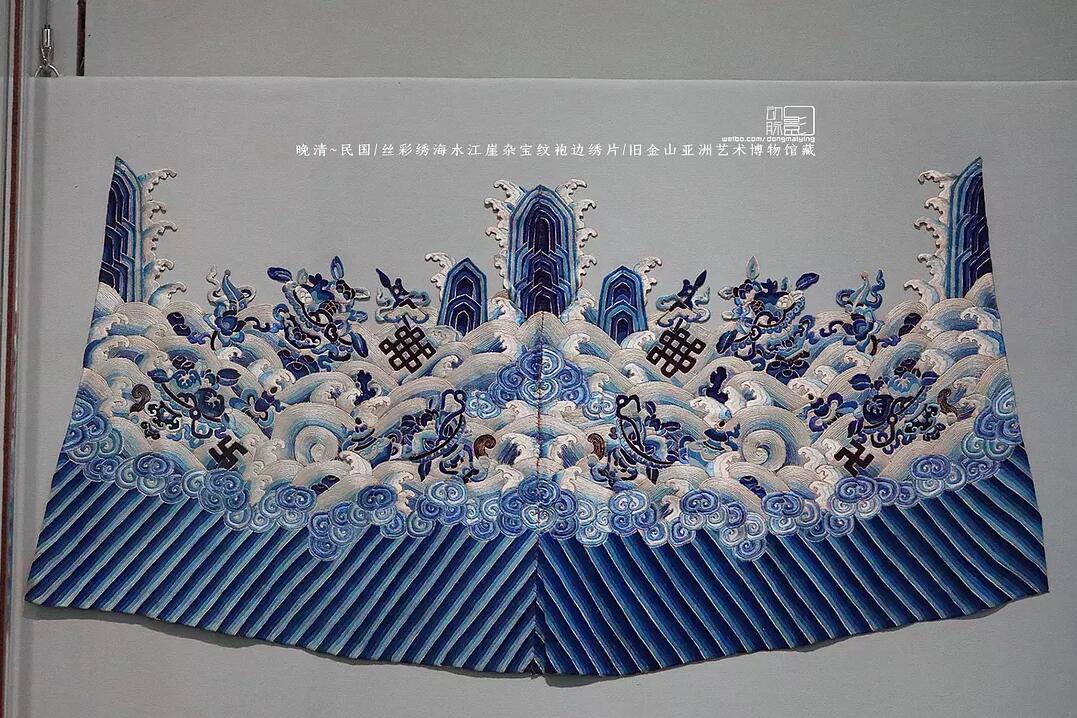《絲彩繡海水江崖雜寶紋袍邊繡片》
